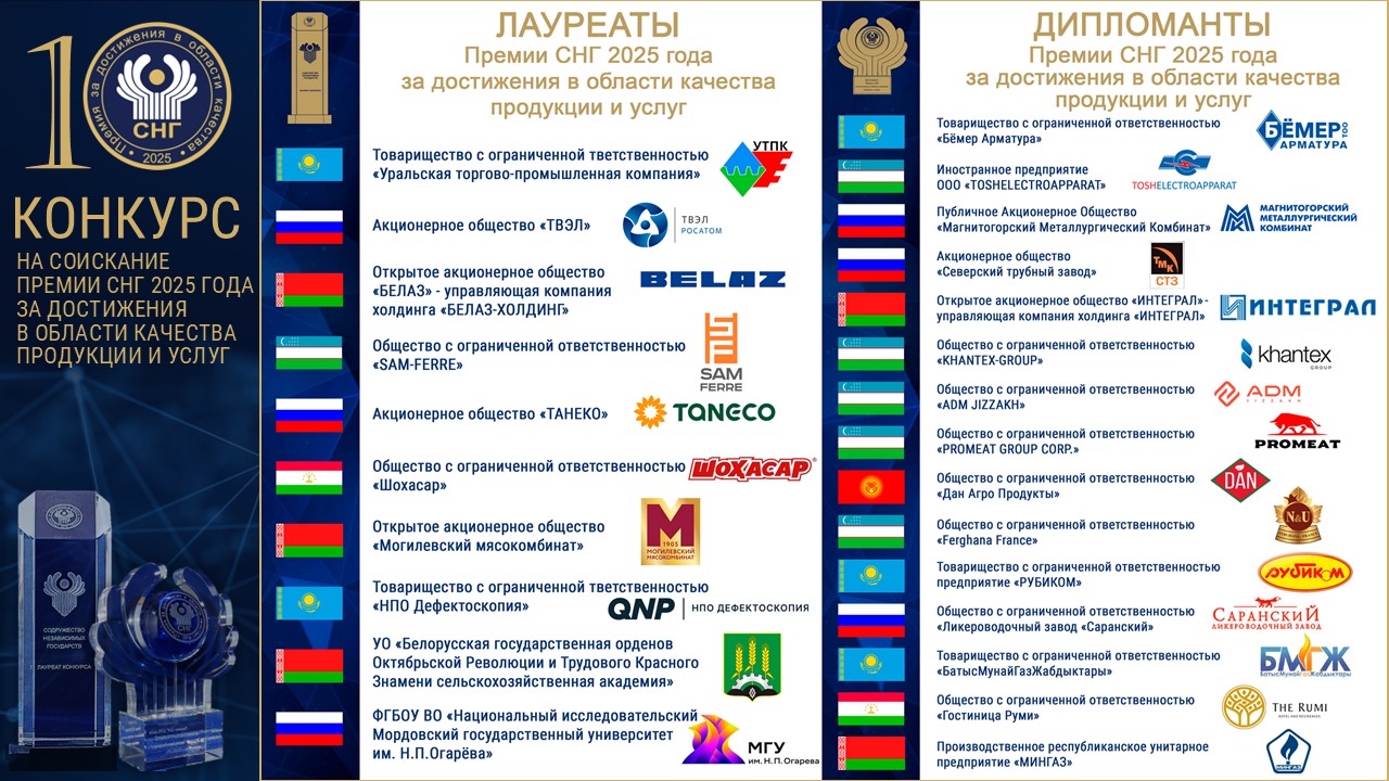 МГС утвержден почетный знак «За заслуги», который является свидетельством признания высокого профессионализма и поощрения за личный вклад в решение межгосударственных вопросов технического регулирования, стандартизации, метрологии, оценки (подтверждения) соответствия и управления качеством государств-участников Содружества Независимых Государств. Награждение осуществляется в соответствии с «Положением о почётном знаке» ( PDF, 140 КБ, PDF, 850 КБ). Список награжденных почётным знаком «За заслуги» ( PDF, 186КБ). Список награжденных Грамотой СНГ и Грамотой Исполкома СНГ ( PDF, 77КБ)
