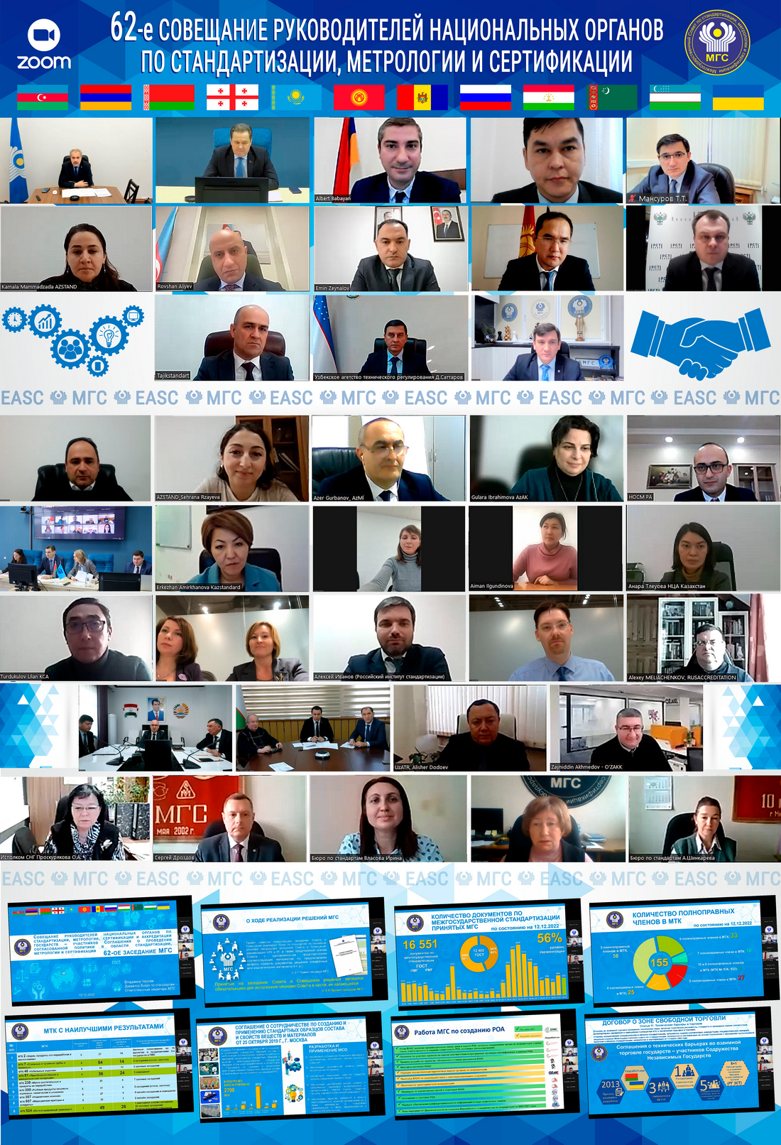 13 декабря 2022 г. в формате видеоконференции состоялось Совещание руководителей национальных органов по стандартизации, метрологии, сертификации и аккредитации государств – участников Соглашения о проведении согласованной политики в области стандартизации, метрологии и сертификации (62-е заседание МГС)