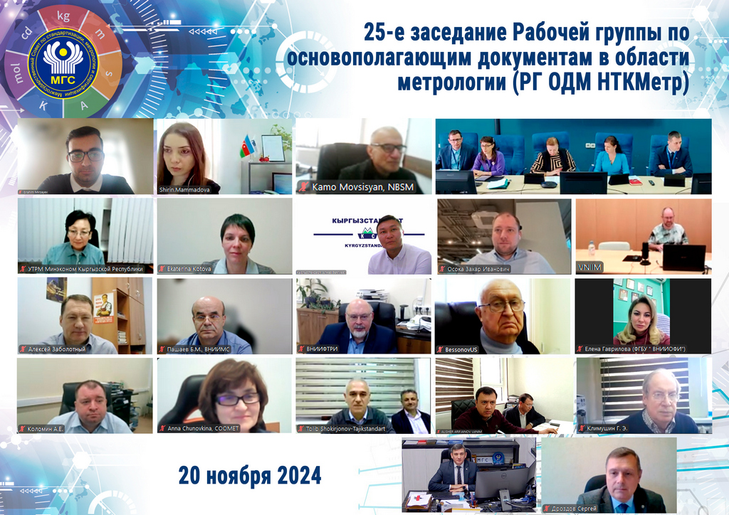 20 ноября 2024 года проведено 25-е заседание Рабочей группы по основополагающим документам в области метрологии Научно-технической комиссии по метрологии (РГ ОДМ НТКМетр) Межгосударственного совета по стандартизации, метрологии и сертификации