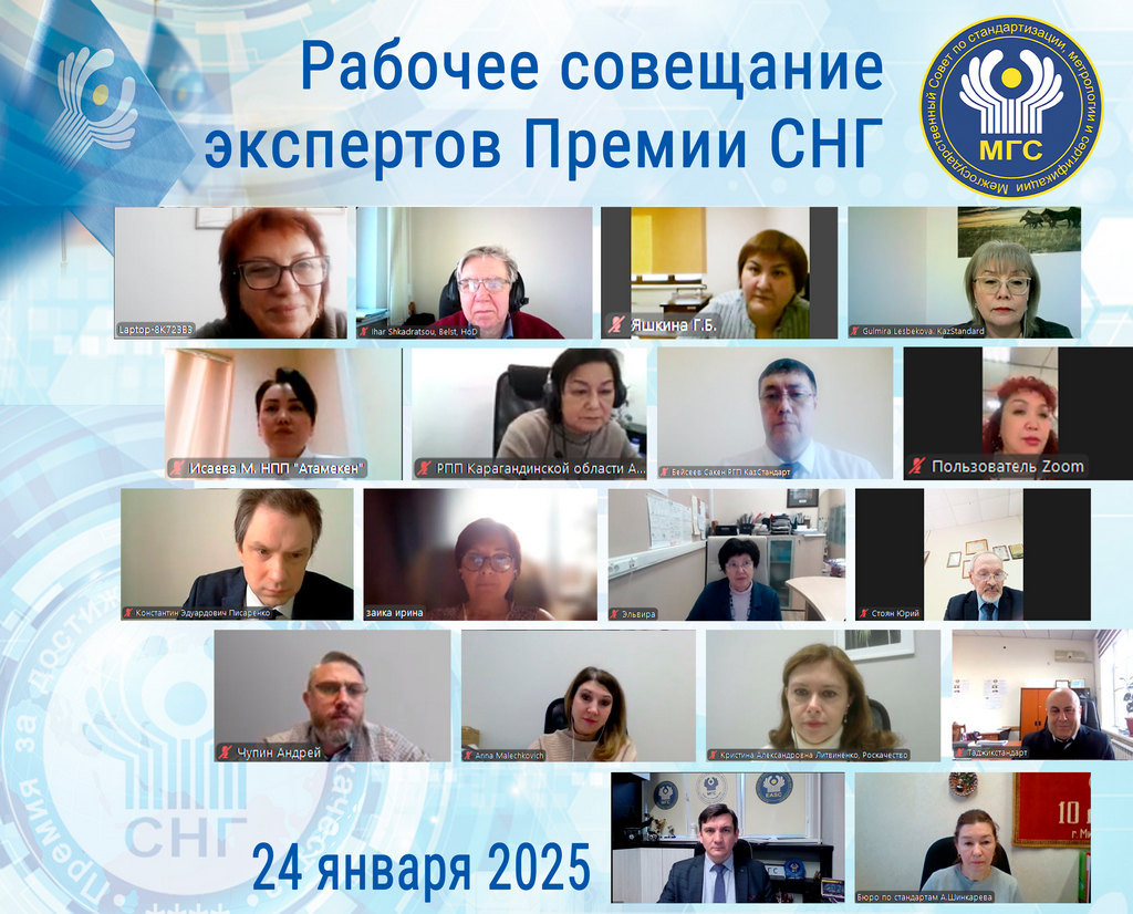 24 января 2025 продолжилась работа экспертов Премии СНГ по обсуждению составляющих Критерия 2 «Поощрение творчества и инноваций», «Объединение вокруг предназначения (миссии), видения и стратегии и привлечение к их реализации» в рамках доработки проекта документа «Методика оценки деятельности организаций на соответствие критериям Премии СНГ». Данное совещание было организовано Бюро по стандартам, в соответствии с рекомендацией, выработанной участниками рабочего совещания, состоявшегося 17 января 2025.