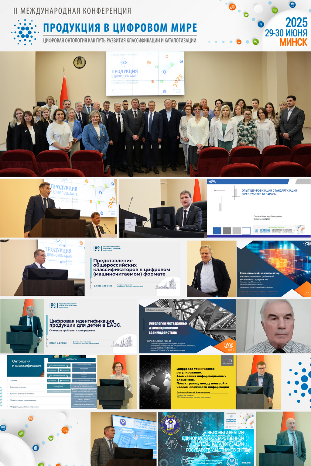 29-30 мая 2025 года БелГИСС c совместно с Консорциумом «Кодекс» (Информационная сеть «Техэксперт») проводит 2-ю Международную конференцию «Продукция в цифровом мире – 2025. Цифровая онтология, как путь развития классификации и каталогизации».