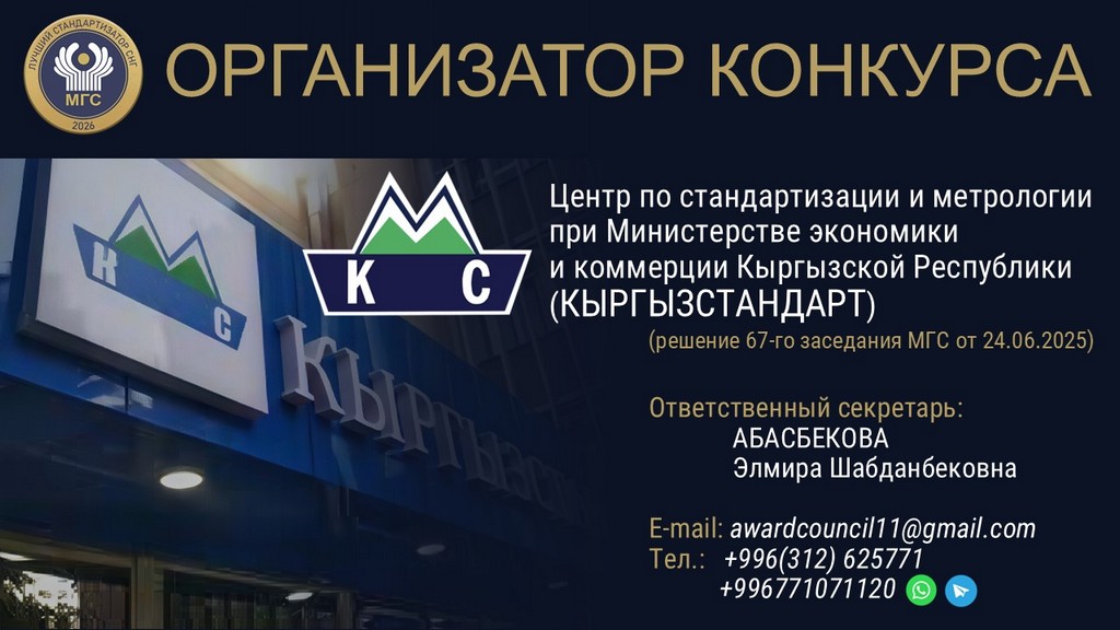 Организатор конкурса – Центр по стандартизации и метрологии при Министерстве экономики и коммерции Кыргызской Республики (КЫРГЫЗСТАНДАРТ).